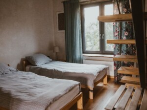 Obiekt cały jest do naszej dyspozycji, mamy 9 pokoi z łazienkami. Każdy pokój ma osobne wejście i jest dwupoziomowy. Sala do Jogi ma widok na sad i jest naprawdę duża. Gołębnik dysponuje również sauną, która mieści maksymalnie 6 osób. Koszt sesji w saunie to 40 zł od osoby lub 240 zł za seans 80-minutowy, jeśli chętnych jest mniej osób.